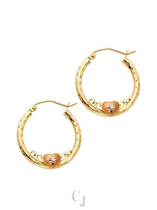 14K 2T 2mm Round Hoop Earrings with Herat (20mm)