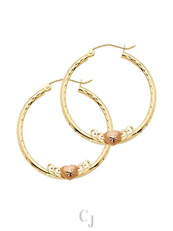 14K 2T 2mm Round Hoop Earrings with Herat (25mm)