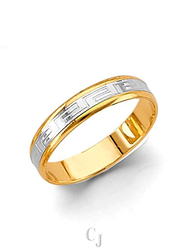 14K 2T 4mm Greek Design Wedding Band