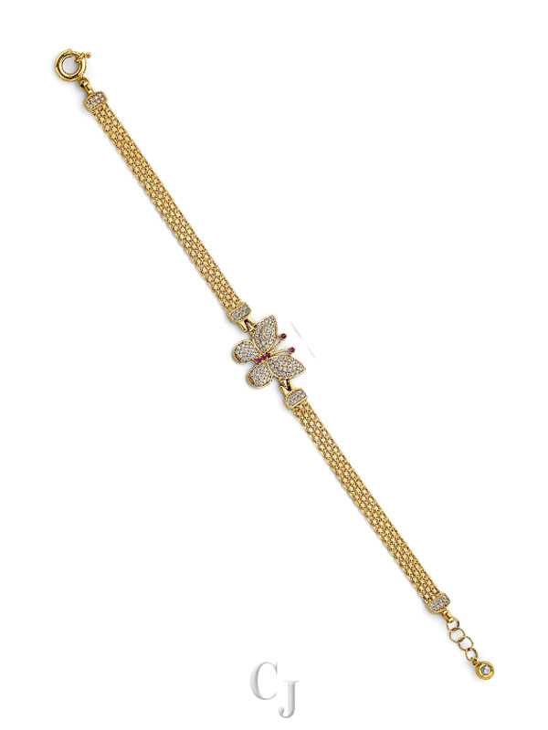 14K 2T CZ Butterfly Bracelet