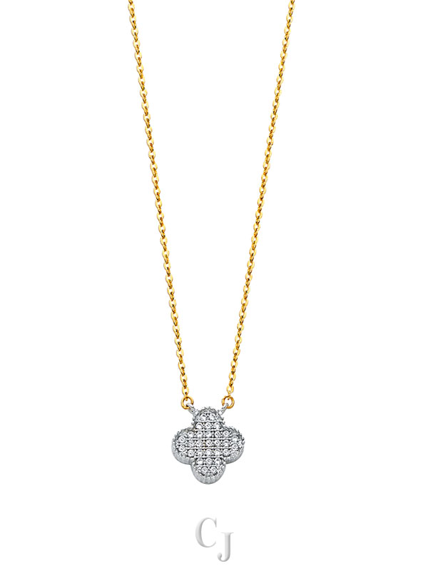 14K 2T CZ Clover Necklace
