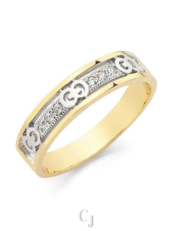 14K 2T CZ Ladies Wedding Band