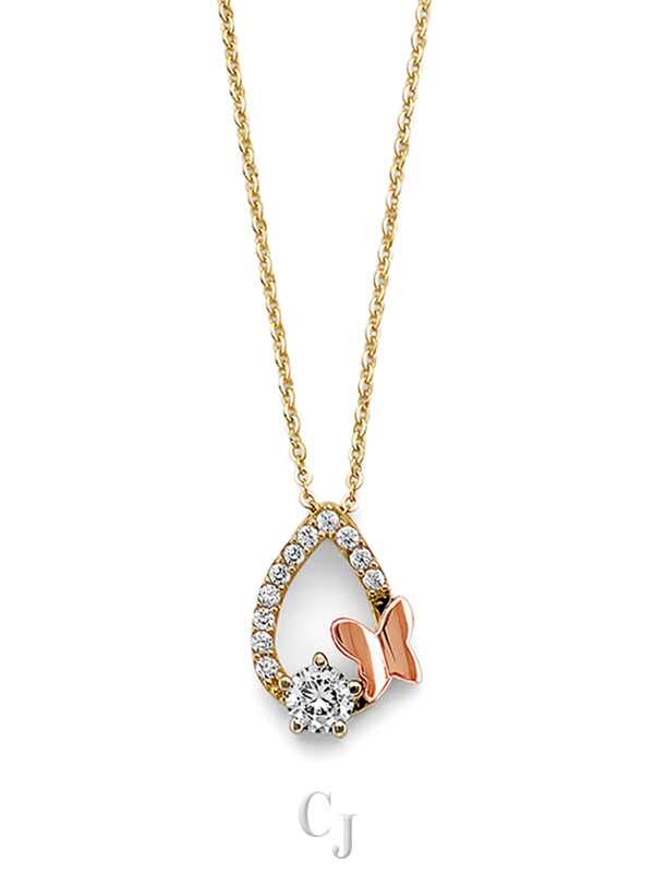 14K 2T CZ Tear Drop with Butterfly Necklace