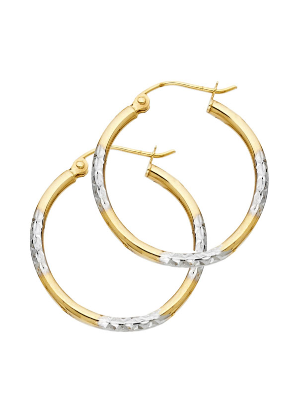 14K 2T DC Round Tube Hoop Earrings (20mm)