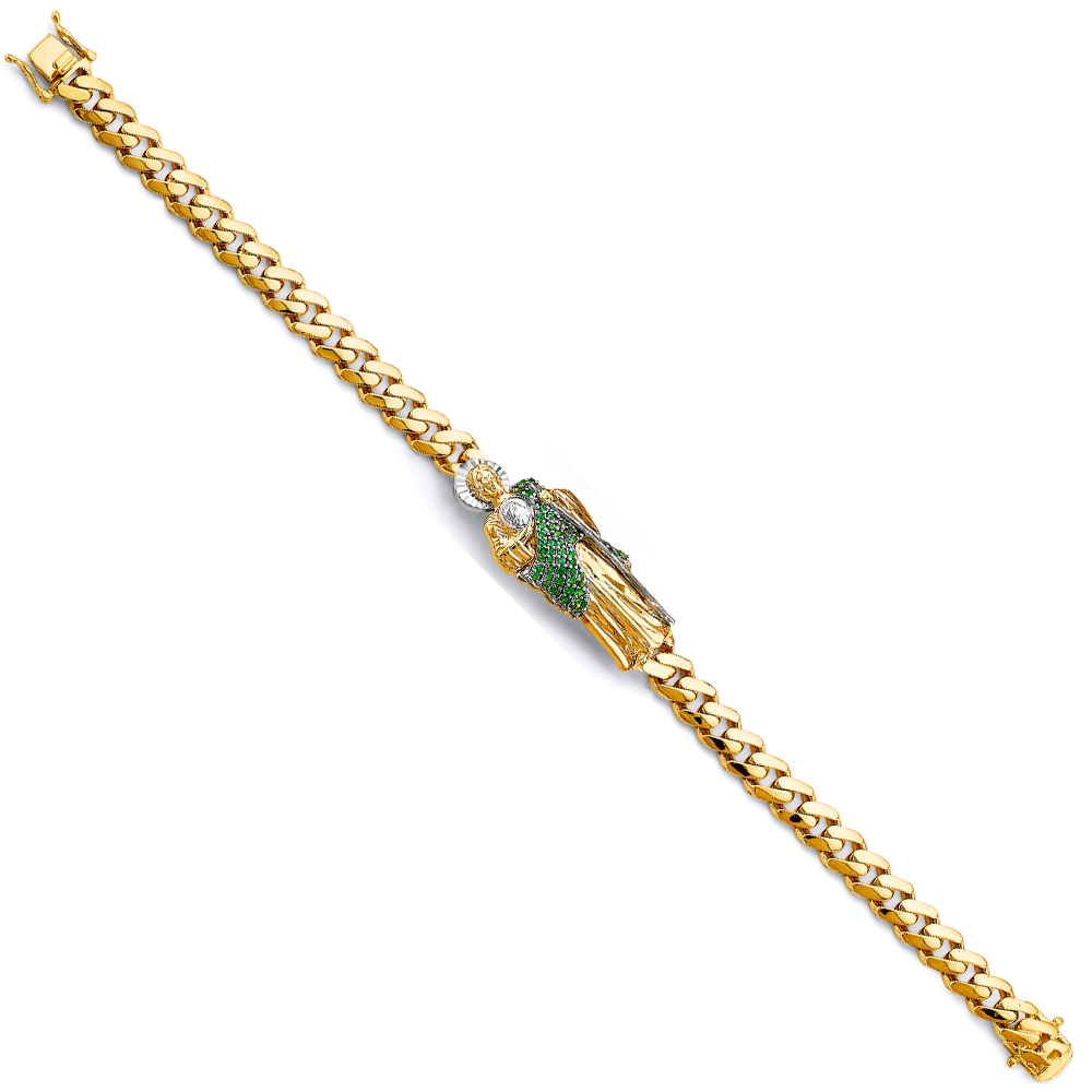 14K 2Tone Cuban Link CZ St. Jude ID Bracelet