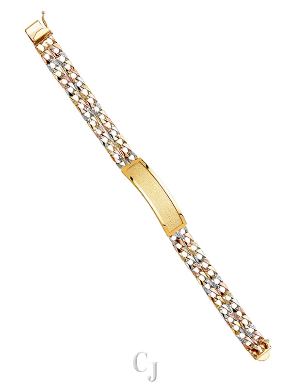 14K 3C 2L Nugget Cuban Light Link Frame ID Bracelet