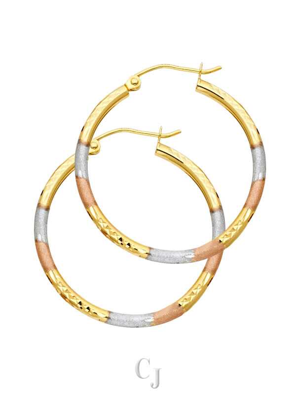 14K 3C 2mm Round Tube DC Round Hoop Earrings (25mm)