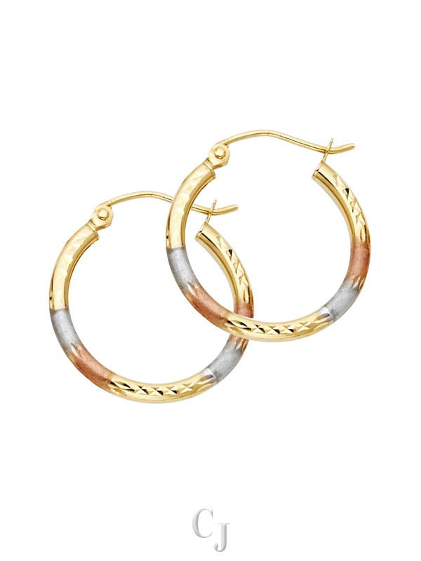 14K 3C 2mm Round Tube DC Round Hoop Earrings (20mm)