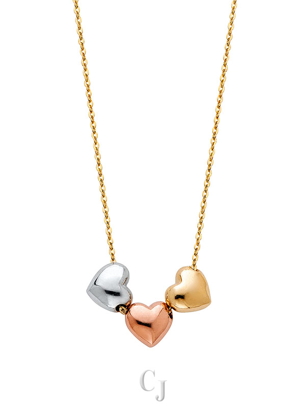 14K 3C 3 Hearts Necklace