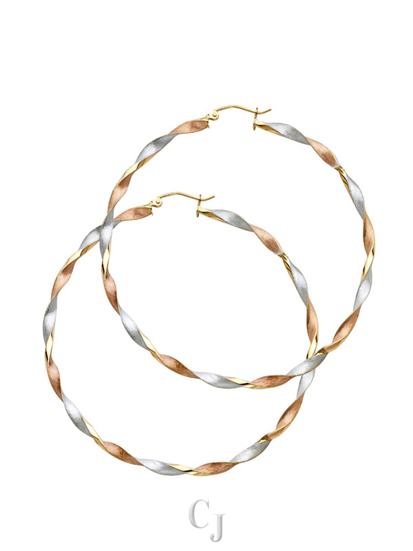 Crafted in 14K yellow, white, and rose gold, these Tri-Color Earrings from Claudia’s Jewelry Inc. offer a distinct yet timeless style. Perfect for adding a touch of elegance and color to any jewelry collection.