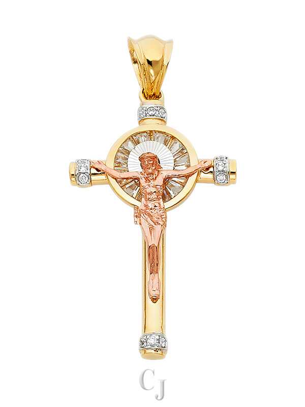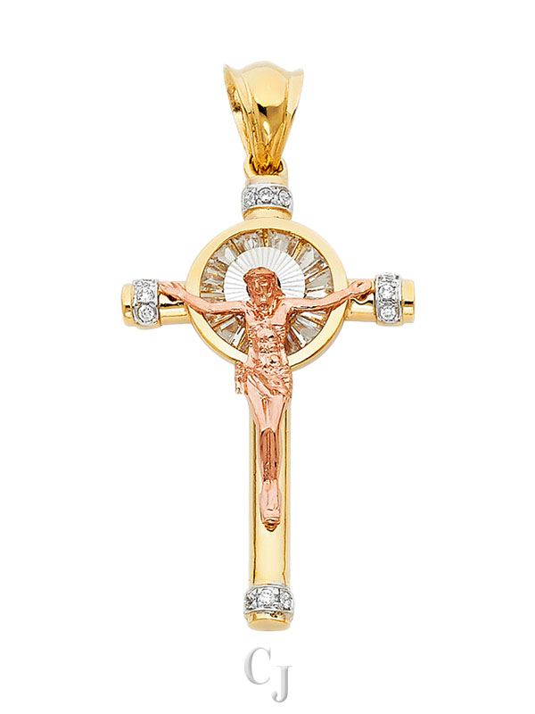 14K 3C CZ Crucufix Pendant