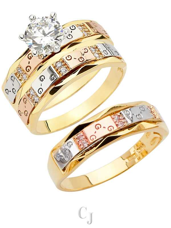 14K 3C CZ Engagement Ring/Trio Set