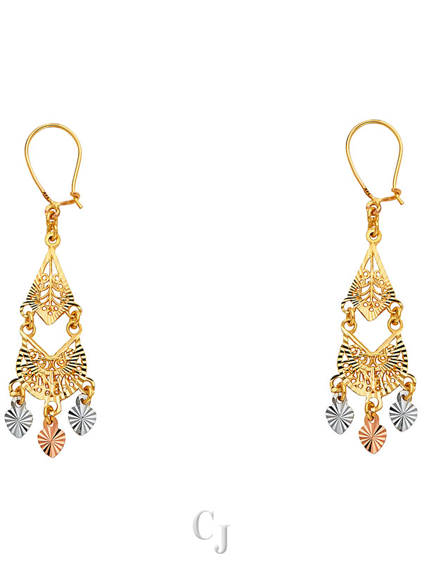 14K 3C DC Chandelier Hanging Earrings