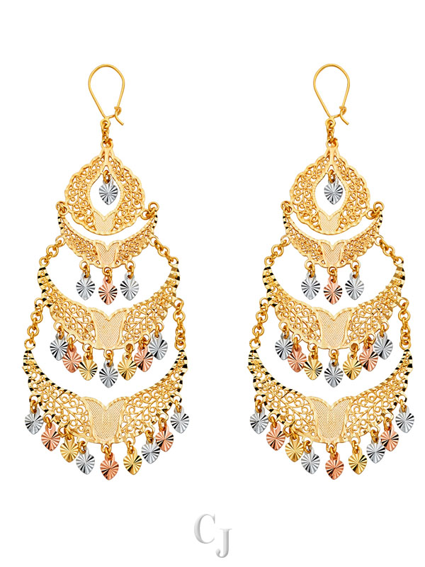 Add graceful movement and color to your look with our 14K tri-color hanging earrings. Featuring a delicate blend of white, yellow, and rose gold, these earrings offer a unique and elegant style. Perfect for both day and evening wear, they bring charm and versatility to any outfit.