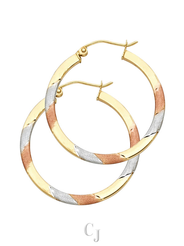 Crafted in 14K yellow, white, and rose gold, these Tri-Color Earrings from Claudia’s Jewelry Inc. offer a distinct yet timeless style. Perfect for adding a touch of elegance and color to any jewelry collection.