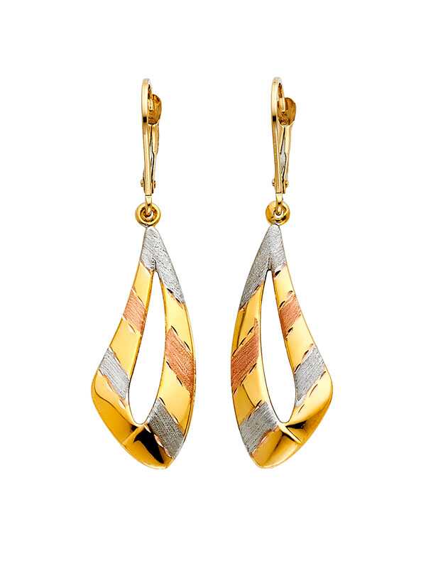 14K 3C Fancy Hollow Earrings with Lever Back