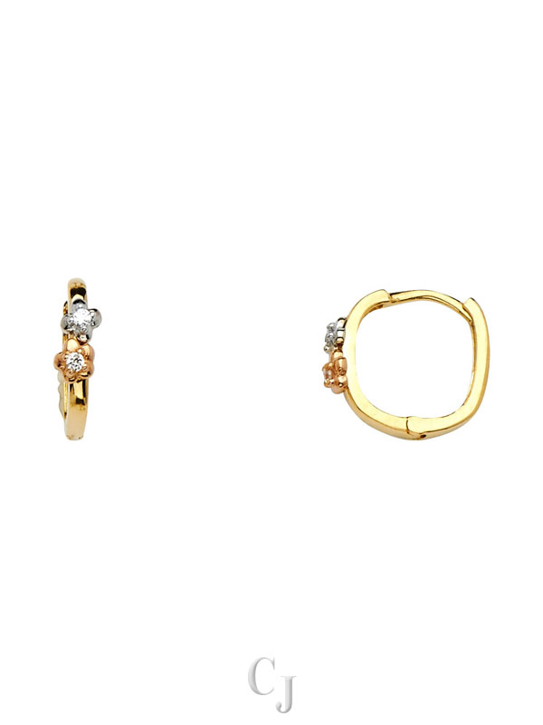 Add color and elegance to your style with our 14K tri-color gold earrings. Blending white, yellow, and rose gold, each pair offers a unique and timeless look. Perfect for any occasion, these earrings bring versatility and charm to every outfit.