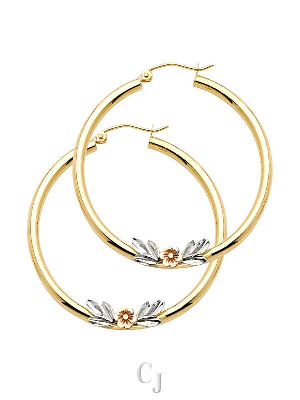 14K 3C Flower Hoop Earrings