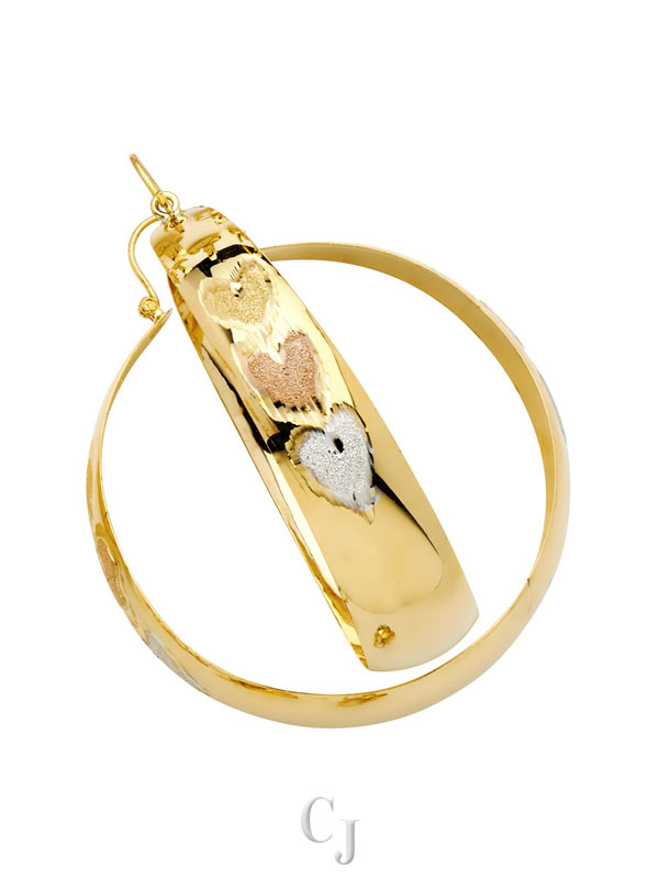 14K 3C Heart DC Graduated Hoop Earrings