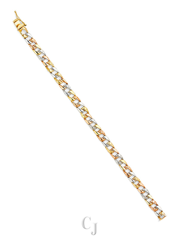 14K 3C Stamp Nugget Cuban Link Bracelet