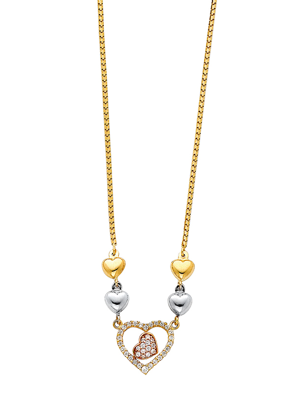 14k Gold Tri-Color Light Hanging Necklace