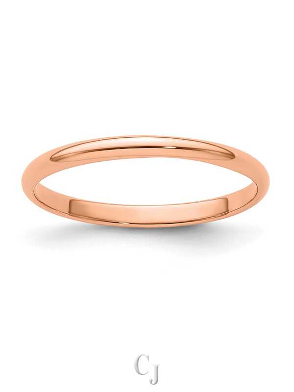 14k Rose Gold 2mm Lightweight Half Round Wedding Band
