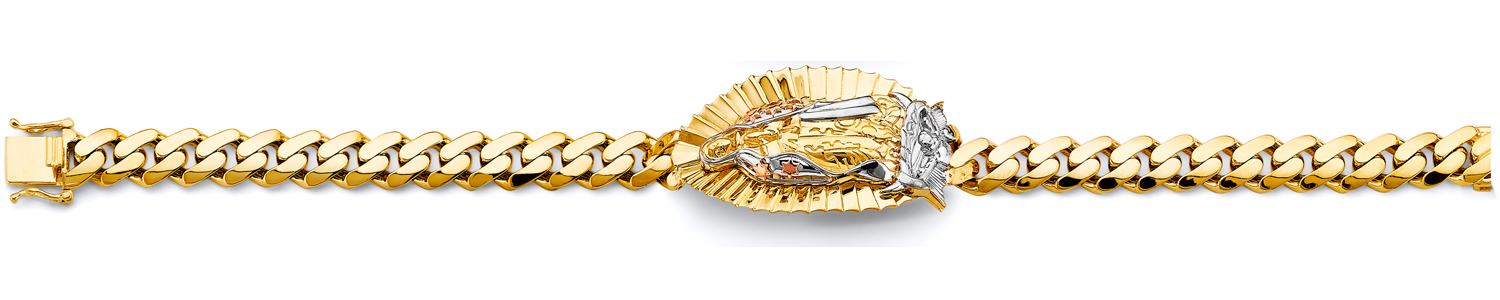 14K Tri-Color Cuban Link Guadalupe ID Bracelet