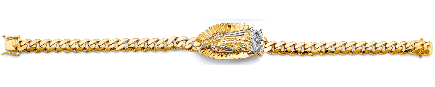 14K Tri-Color Cuban Link Guadalupe ID Bracelet