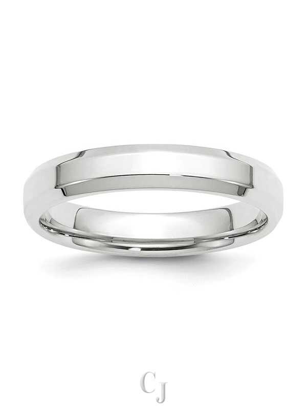 14k White Gold 4mm Beveled Edge Comfort Fit Wedding Band