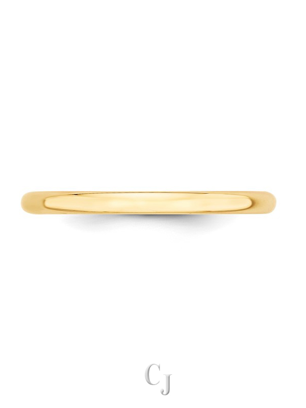 14k Yellow Gold 2mm Lightweight Half Round Wedding Band