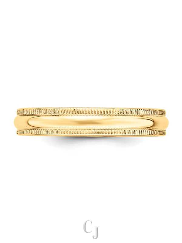 14k Yellow Gold 4mm Lightweight Milgrain Half Round Wedding Band