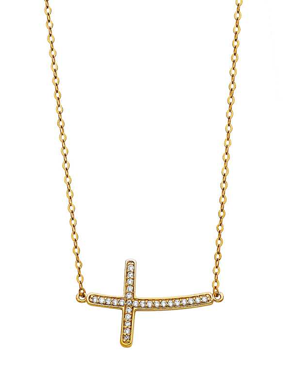 14k Yellow Gold CZ Side Way Cross Necklace