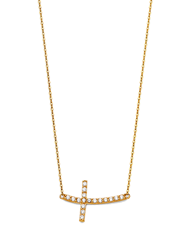 14k Yellow Gold Side Cross Pendant Necklace