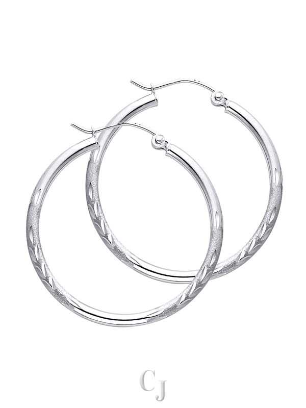 14KW 2mm Budded DC Round Tube Hoop Earrings (30mm)