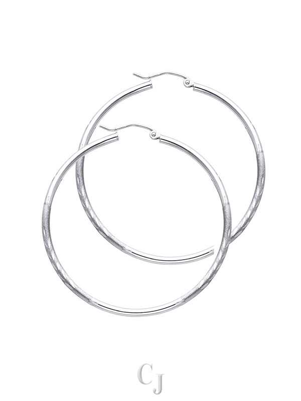 14KW 2mm Budded DC Round Tube Hoop Earrings (35mm)