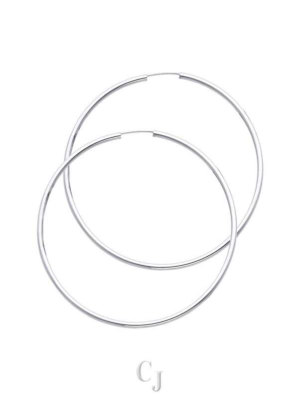 14KW 2mm Round Tube Polished Endless Hoop Earrings (55mm)