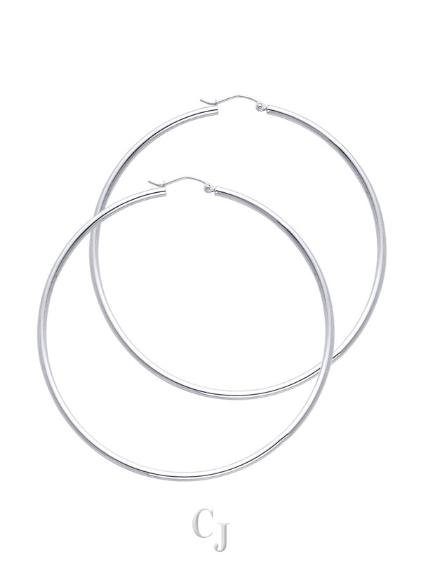 14KW 2mm Round Tube Polished Hoop Earrings (55mm)
