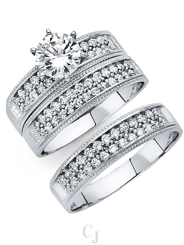 Crafted in genuine 14K gold, this CZ Trio Set includes a men’s band, a women’s band, and a sparkling engagement-style ring. Each piece is set with brilliant Cubic Zirconia stones, making it a perfect choice for couples who want elegance and lasting style.