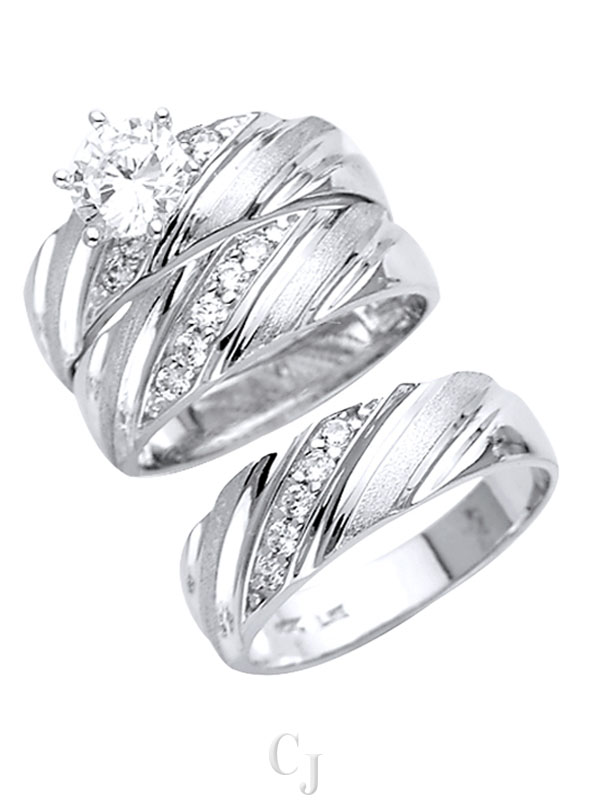 14KW CZ Engagement Ring/Trio Set
