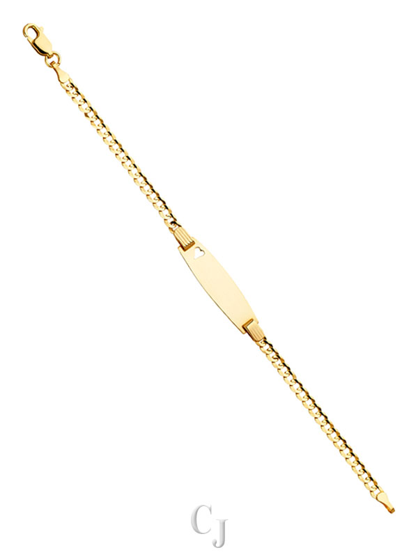 14KY 080 Cuban Baby Oval ID with Heart Bracelet