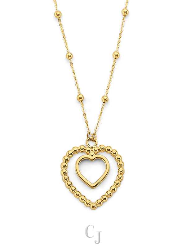 14KY 2 Heart Pendants Bead Necklace