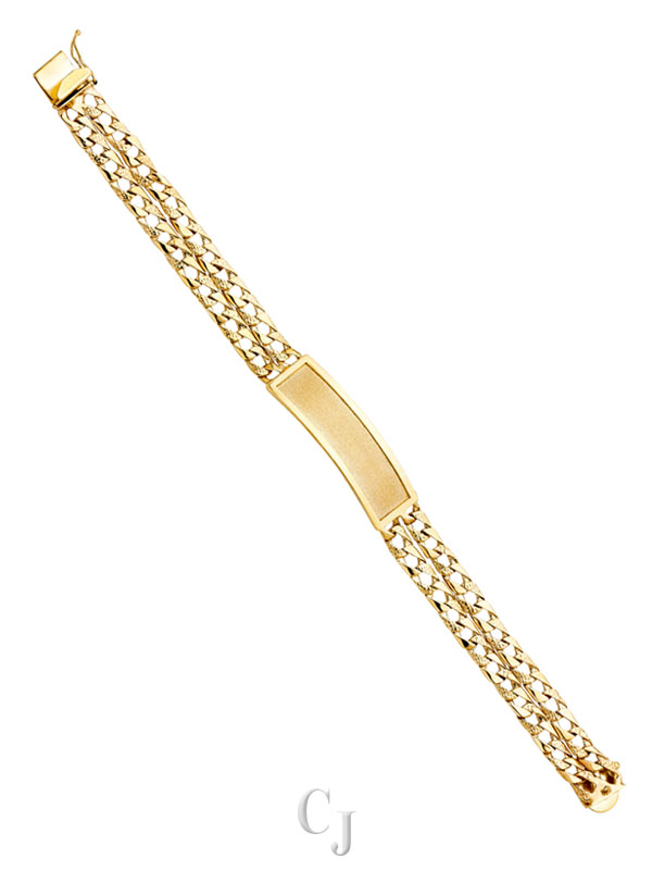 14KY 2L Light Nugget Cuban Link Frame ID Bracelet