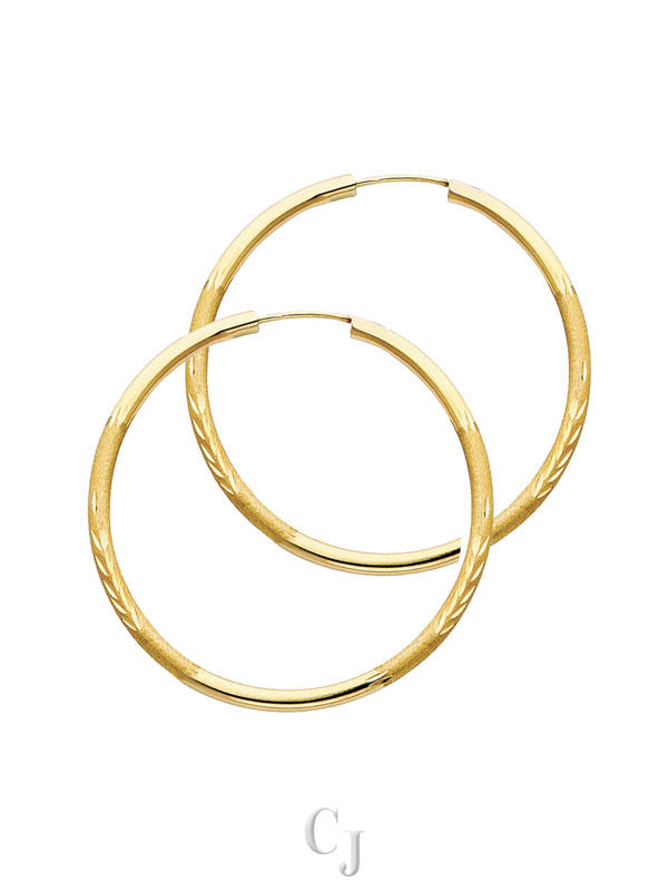 14KY 2mm Budded DC Endless Hoop Earrings (30mm)