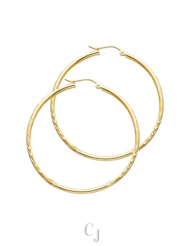 14KY 2mm Budded DC Round Tube Hoop Earrings (35mm)