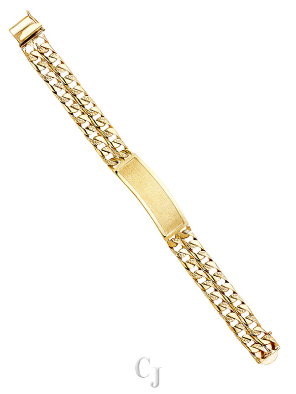14KY 3L Nugget Cuban Link Frame ID Bracelet