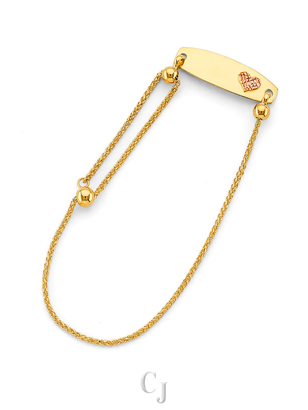 14KY Adjustable Heart ID Bracelet