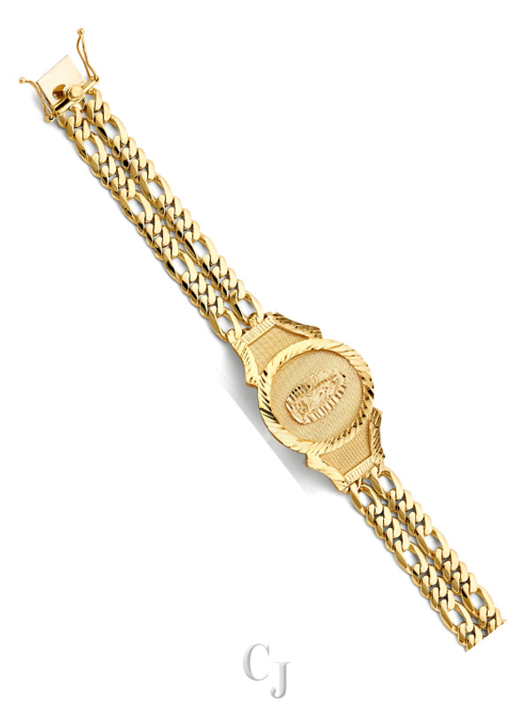 14KY 2Line Figaro Guadalupe Frame ID Bracelet
