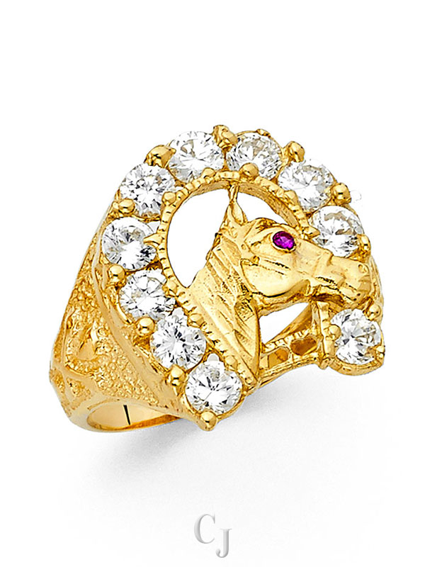 14KY CZ Lucky Horse Shoe Men’s Ring