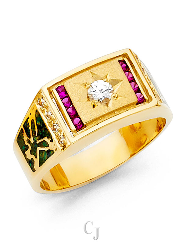 14KY CZ Men’s Ring with Ruby