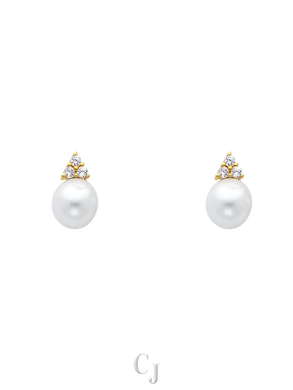 14KY CZ Pearl Earrings